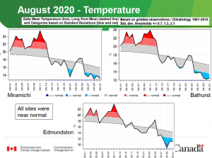 See all the details in the attached final report for August and an outlook for September 2020 from Jill Maepea, Warning Preparedness Meteorologist / Client Service Operations Atlantic, Environment and Climate Change Canada / Government of Canada