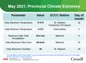 See all the details in the attached final report for May and an outlook for June 2021 from Jill Maepea, Warning Preparedness Meteorologist / Client Service Operations Atlantic, Environment and Climate Change Canada / Government of Canada